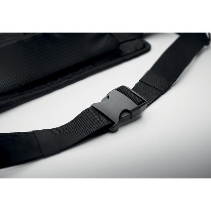Turistická ľadvinka z vodoodpudivého 420D nylonu s 210D polyesterovou podšívkou. Reflexný pásik. Plne polstrovaná hlavná priehradka a veľký obojsmerný zips. Vetraná zadná strana.